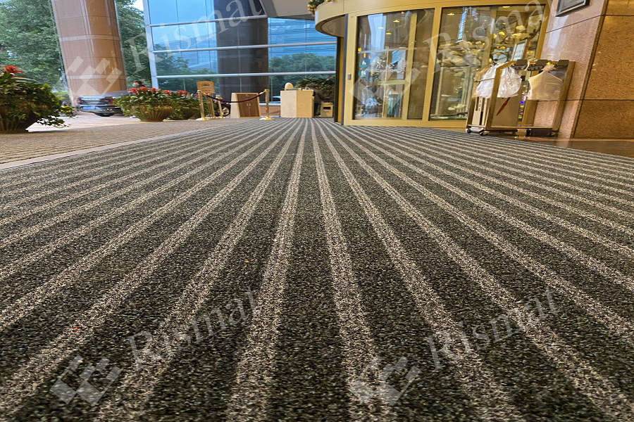 雅瑞是一款强力刮沙除尘吸水地垫,由强力刮沙的单纤维和强力吸水的尼龙纤维交替织成,簇绒织法以及原液印染工艺使得它司以铺设建筑物门外或室内,具有抗紫外线功效,长期使用仍能保持色泽鲜艳。尤其适合雨雪天气使用,其尼龙的吸水效果能长久保持地面清洁、干爽,预防滑到事故发生。