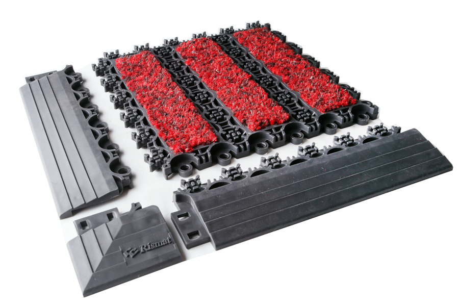 维豪是一款安装及维护非常方便的拼装式地垫,其模块和毯面可单独更换。TPE底座自带重量,防止移位,疏水防滑,抗紫外线,并且具有超强的刮沙汲水功效。将其铺设的建筑物大门外或防风门内,能隔离鞋底和地面,去除鞋底60%-70%的污染物,室内搭配Rismat毯面型地垫使用,去污效果可达85%-95%。建议铺设距离≥6米,可使地垫发挥最佳除污功效。