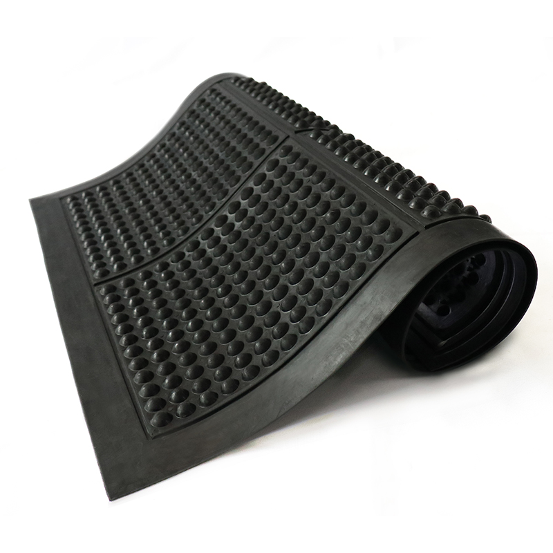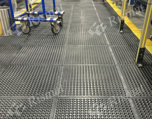 抗疲劳地垫综合了各种功能:抗疲劳、高弹性、防震、促进血液循环等,能有效地防止撞击及致命的伤害,对于工业及恶劣的环境十分耐用。它的底部及表面的形状是为了工人长时间站立而设计的,能缓解腿部由于长时间站立而引起的疲劳和痛苦。