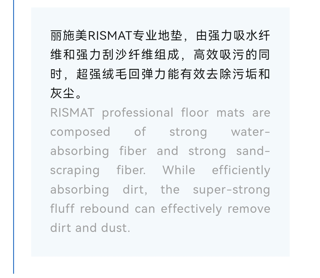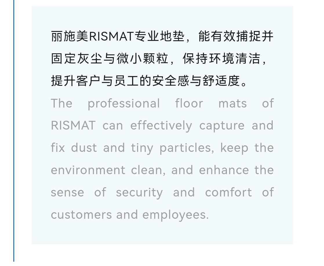 [下一篇]:丽施美RISMAT地垫解决方案在商业地产领域的运用