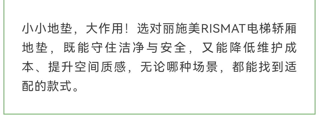 丽施美RISMAT电梯轿厢专用地垫:控尘耐磨,保护地材