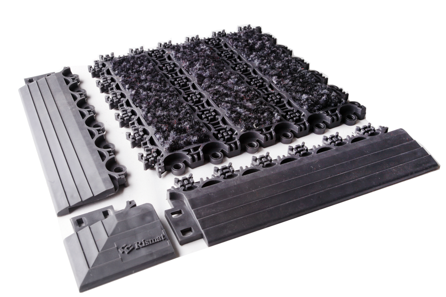 维豪是一款安装及维护非常方便的拼装式地垫,其模块和毯面可单独更换。TPE底座自带重量,防止移位,疏水防滑,抗紫外线,并且具有超强的刮沙汲水功效。将其铺设的建筑物大门外或防风门内,能隔离鞋底和地面,去除鞋底60%-70%的污染物,室内搭配Rismat毯面型地垫使用,去污效果可达85%-95%。建议铺设距离≥6米,可使地垫发挥最佳除污功效。