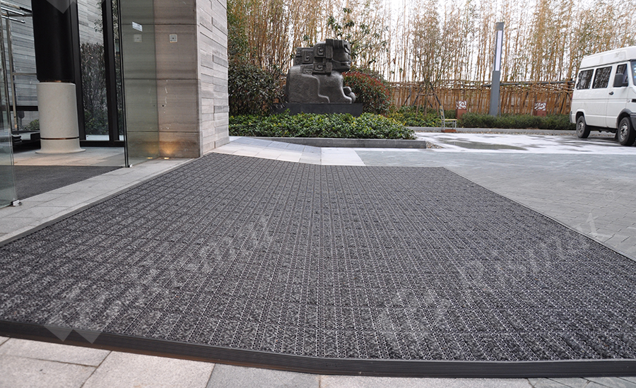 强力吸水除尘垫:高流量区域的清洁屏障。由强力刮沙的尼龙单丝和强力吸水的尼龙纤维交替织成,簇绒织法以及原液染工艺使得它可以铺设在室外或室内,具有抗紫外线功效,长期使用仍能保持色泽鲜艳。尤其适合雨雪天气使用,长久保持地面清洁、干爽。