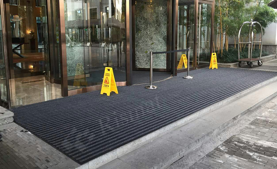 刮沙除尘吸水垫:三重防护,守护大堂洁净,从入口至大堂丽施美RISMAT刮沙除尘吸水垫以“刷子结构+吸水纤维”复合工艺实现三重净化:硬丝刮除鞋底泥沙、簇绒吸附细小灰尘、高分子层吸收残留水分,显著降低保洁人力成本。