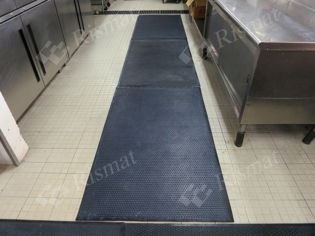实心橡胶垫的主要功能是防滑、抗疲劳和耐磨。刮条能在工人走动时保持鞋底清洁干爽,底部吸盘能让地垫牢牢吸附于湿滑的地面防止移位,配合孔型的设计提高位置,改善排水排污问题避免鞋底与污水直接接触。斜角边缘对地面的完美贴合使您的工人拥有更高的安全保障。坚韧却附有弹性的材质可以让长期处于站立或行走状态的工人减轻疲劳。适用于商业厨房以及工业区。