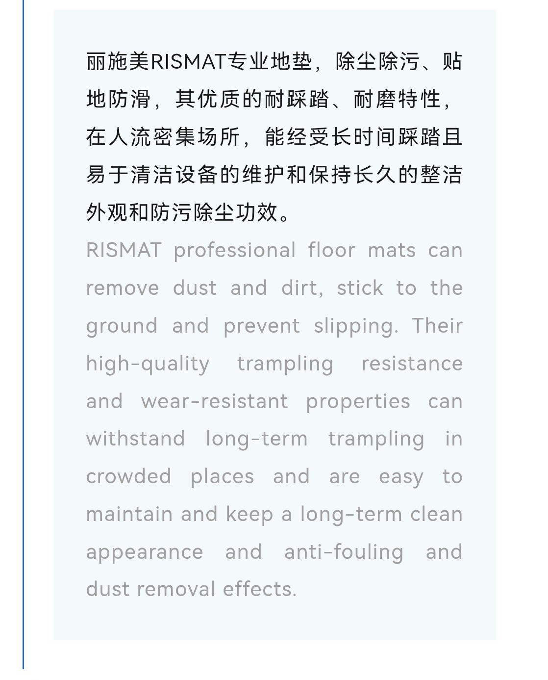[下一篇]:丽施美RISMAT地垫解决方案在商业地产领域的运用