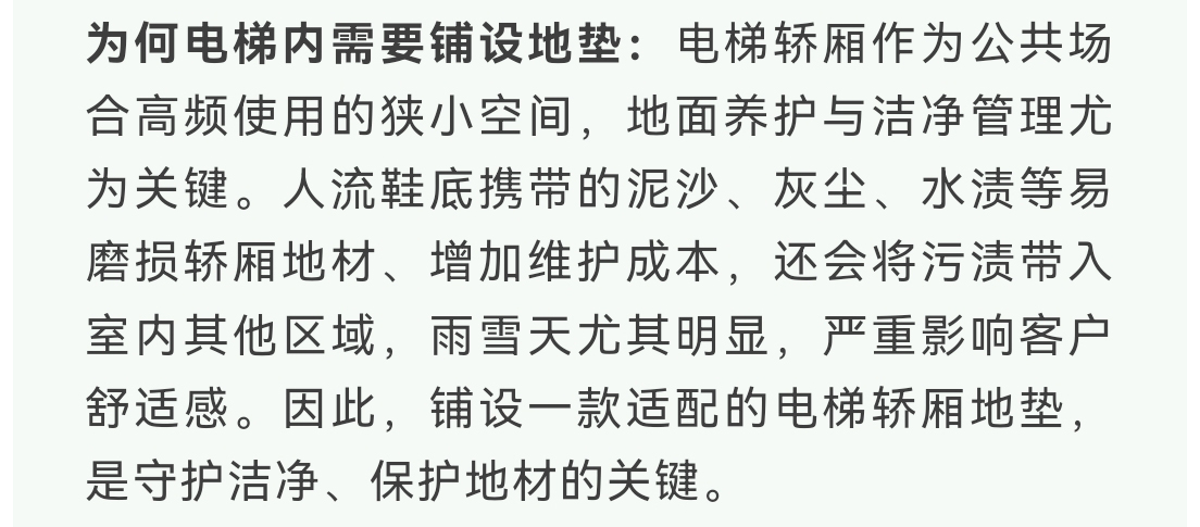 丽施美RISMAT电梯轿厢专用地垫:控尘耐磨,保护地材